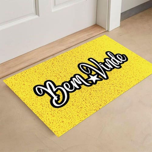 Tapete Amarelo Bem Vinde Pronome Neutro 60X40Cm Tapete para decorar sua casa ou apartamento Medindo 60cm de comprimento por 40cm de largura Tendo 10mm de espessura. Sua personalização é pintada trazendo um tapete bem detalhado. Marca: Não Informado