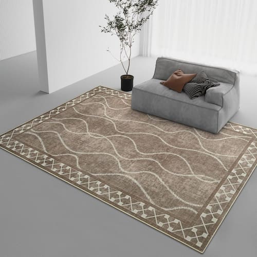 O tapete com bordas vintage moderno apresenta um esquema de cores clássico, criando uma aparência geral que é perpetuamente elegante e com textura distinta. Feito de materiais de primeira qualidade, este tapete lavável não é apenas resistente, mas também extremamente conveniente de limpar. Com sua estrutura baixa, serve como uma seleção perfeita para famílias com animais de estimação e crianças, permitindo que eles se envolvam em atividades de brincar e desenhar sem restrições.