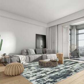 Tapete Area Gent drizz Modern Abstract 5 x 7 pés preto azul