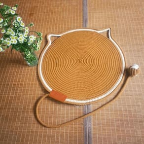 Transforme o cantinho do seu pet em um verdadeiro refúgio de conforto e brincadeira com o Tapete com Orelhinhas de Gato. Além de funcional, é um item decorativo que dá charme e personalidade a qualquer ambiente. Com design redondo e detalhes de orelhinhas, o tapete acompanha uma bolinha suspensa em cabo de 50cm, perfeita para estimular os instintos de caça e brincadeira do seu gatinho. Produzido em corda de algodão trançada com acabamento em linho lavável, é resistente e ideal para servir como arranhador natural, ajudando a manter as garrinhas saudáveis enquanto o pet se diverte e descansa. Benefícios:
