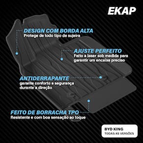 Especificações: - Marca: Ekap - Indicado para o veículo: Destroyer; - Versões aplicáveis: Todas as versões; - Material: borracha TPO flexível e resistente; - Formato: bandeja com bordas altas; - Resistência: à água, poeira, lama e produtos químicos leves; - Instalação: acoplamento no assoalho sem necessidade de ferramentas;