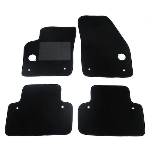Este jogo de tapete é composto por 4 peças, sendo 2 tapetes dianteiros e 2 tapetes traseiros. As peças dianteiras possuem bordados laterais e tiras aderentes para fixação. A cor disponível é preta.
