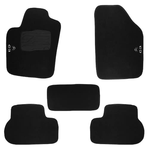 Tapete Automotivo Citroen C3 Em Carpet Linha Luxo Jogo de tapete linha grify luxo carpete com espessura de 11 mm na cor preta com base antiderrapante em pvc pinado. Bordado com a grafia e nome, lavável. Jogo com 5 peças. O jogo de tapete linha grify luxo carpete produzido pela Tapecars, possui um design exclusivo e com acabamento perfeito no seu carro, carpete em pelo alto com 11mm de espessura vem com acabamento nas laterais na cor preta, e com grafia bordada em 3D nos 02 tapetes dianteiros e bordado também no túnel com a grafia da montadora. Vem com tiras aderentes costurado nas duas peças dianteiras para sua maior segurança e melhor fixação do produto. Esse jogo é um produto com excelente qualidade, com 05 peças e o tapete do motorista vem com um pisante em pvc para segurança do motorista, evitando que escorregue. Cor disponível - Preto Especificação técnica do produto - Jogo composto com 5 peças - Carpete de ótima qualidade com 11 mm - Base em pvc pinado antiderrapante - Fabricado em polipropileno - Grafia bordada igual ao da montadora - Pisante em pvc no tapete do motorista - tiras aderentes costurado nas 2 peças dianteiras - Bordado lateral nas 2 peças dianteiras - Bordado no túnel traseiro - Tapete lavável e impermeável - Proteção anti-chamas - Encaixe perfeito e sob medida Conteúdo da embalagem - 02 Tapetes dianteiros - 02 Tapetes traseiros - 01 Tapete central - 03 Meses Importante - Valor do jogo - Não nos responsabilizamos por mau uso do produto - Imagens meramente ilustrativas