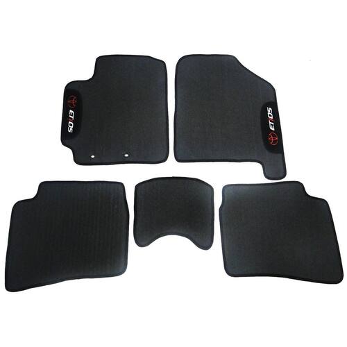 jogo de tapetes automotivos em pvc preto com grafia e emblema 5 peças