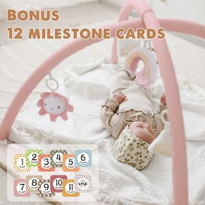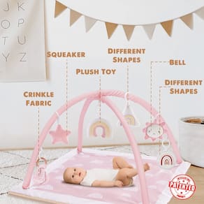 Tapete de barriga lavável, academia para brincar com 6 brinquedos em destaque, academia para bebês e crianças, tapete de brinquedo maior para bebês, tapetes de luxo para o chão, desenvolvimento de - Macio e acolchoado: nosso tapete para barriga é feito de tecidos de alta qualidade, oferecendo um toque espesso e suave que é seguro e suave na pele delicada do bebê. Equilibramos cuidadosamente o nivelamento e a suavidade do tapete, garantindo que seu bebê possa sentar ou ficar em pé com maior estabilidade. Desfrute de uma experiência aconchegante e relaxante para o seu pequeno com nossa academia macia e acolchoada! - Lavável na máquina e não escorrega: nossa academia para bebês é lavável, facilitando a manutenção da limpeza e da higiene. As partículas antiderrapantes na parte inferior do tapete garantem que ele permaneça firmemente no lugar, mesmo em pisos de madeira ou mármore. Desfrute de uma limpeza sem complicações e brincadeiras sem preocupações com nossa academia para bebês lavável e antiderrapante! - 6 brinquedos sensoriais para pendurar e bônus: eleve a hora de brincar com os 6 brinquedos removíveis da nossa academia para bebês. Estes brinquedos cuidadosamente trabalhados atendem às necessidades de crescimento do seu bebê e estimulam a exploração sensorial sem limites. Como um bônus encantador, também incluímos 12 cartões coloridos para celebrar cada mês da incrível jornada do seu bebê. - Fácil de montar e desmontar: montar este tapete de brinquedo para bebês é muito fácil - os postes de suporte se encaixam no lugar e os brinquedos prendem facilmente. Seu design leve permite fácil dobragem e portabilidade, tornando-o perfeito para uso interno e externo. - TAMANHO PERFEITO E MULTIFUNCIONAL: os tapetes de brincar para o chão têm o tamanho perfeito para proporcionar amplo espaço para os bebês explorarem, brincarem e praticarem a barriga. Este tapete multifuncional suporta o crescimento dos bebês, desde recém-nascidos até crianças ativas, oferecendo diversão infinita e novos desafios.