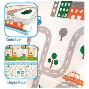 Características do Tapete: - Dupla Face - Impermeável; - Base antiderrapante; - Fácil de limpar e durável; - Cobertura macia e acolchoada; - Pode ser levado para atividades ao ar livre; - Não transmite a temperatura do chão para o bebê; - Fácil transportar e guardar, tapete leve e dobrável; - Estampa de desenhos com cores vibrantes e divertidas; - Atóxico: Não contém metais pesados e nem químicas tóxicas; - Pode ser utilizado no quarto das crianças, na sala, em escolas, berçários, salas de recreação e parques.