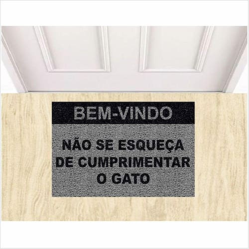 Tapete Bem Vindo Não Se Esqueça De Cumprimentar o Gato Pet. - Cor: Cinza