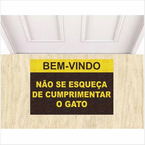 Tapete Bem Vindo Não Se Esqueça De Cumprimentar o Gato Pet. - Cor: Marrom