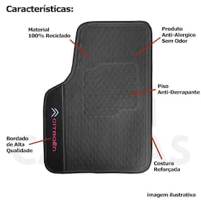 Tapete Borracha Citroen C3 Aircross Picasso Sonora Bordado Com acabamento na cor preta, produzido com material altamente resistente, com belo bordado, Este Jogo de Tapete protege o assoalho do veículo e pode ser lavado, pois ele é totalmente reciclável e ecológico, Além das bases e superfícies antiderrapantes. Feito sob medida para o seu veículo.