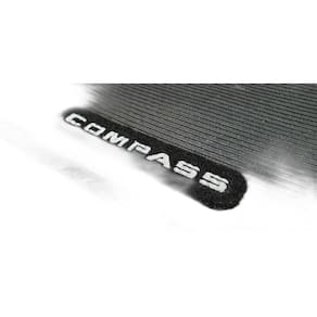 Tapete Compass com traseiro inteiriço Anos 2017 a 2022 PVC Frisado Ilhós de segurança para melhor fixação Sem odor Base antiderrapante Impermeável Lavável e de fácil limpeza Bordado em todas as peças Encaixe perfeito no seu veículo Modelo personalizado para cobrir o apoio do pé esquerdo