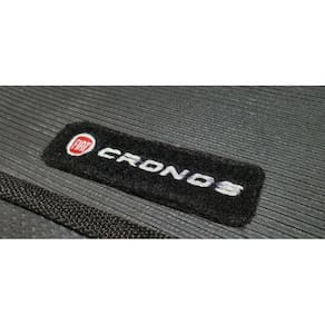 Tapete Cronos com traseiro inteiriço e Porta-malas Anos 2018 a 2022 PVC Frisado Ilhós de segurança para melhor fixação Sem odor Base antiderrapante Impermeável Lavável e de fácil limpeza Bordado em todas as peças Encaixe perfeito no seu veículo Modelo personalizado para cobrir o apoio do pé esquerdo