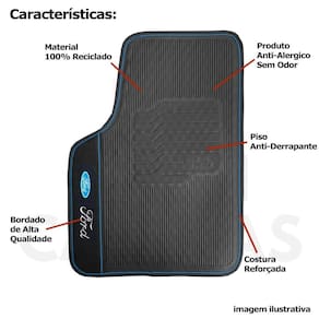 Tapete borracha ford ecosport edge fusion mondeo bordado com acabamento na cor preta, produzido com material altamente resistente, com belo bordado, este jogo de tapete protege o assoalho do veículo e pode ser lavado, pois ele é totalmente reciclável e ecológico, além das bases e superfícies antiderrapantes. Feito sob medida para o seu veículo. Jogo de tapetes para a linha ford com bordado. Características - 100% policloreto de vinila - anti-alérgico - sem odor - maior durabilidade - 100% reciclado e ecológico - - cor: preto fosco - marca: aladin