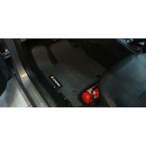 Tapete Logan com traseiro inteiriço e Porta-malas Anos 2014 até 2022 PVC Frisado Ilhós de segurança para melhor fixação Sem odor Base antiderrapante Impermeável Lavável e de fácil limpeza Bordado em todas as peças Encaixe perfeito no seu veículo Modelo personalizado para cobrir o apoio do pé esquerdo