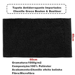 Tapete Buettner Microfibra Antiderrapante Chenille Greco 40x60cm Preto Tapete para banheiro antiderrapante no tamanho 40cm x 60cm modelo Greco, com toda a qualidade e exclusividade da marca Buettner. Importado com toda qualidade vaidade pela própria Buettner, o tapete possui superfície em microfibra (100% Poliéster), dando uma ótima sensação ao pisar! Seu acabamento possui uma grande cobertura de microfibra, com o chenille todo conforme em uma única altura e espessura, dando muito conforto e maciez ao estar sobre ele e deixando o ambiente muito bem decorado. Tapete Buettner Microfibra Antiderrapante Chenille Greco 40x60cm Preto