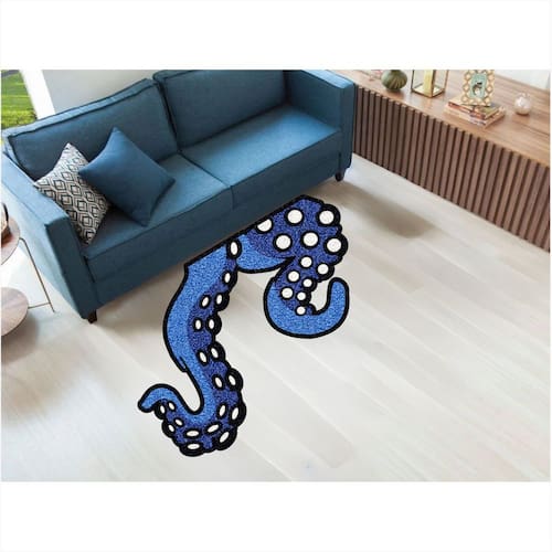 Tapete Capacho Animalia Polvo Tentáculos No formato 80X60 cm - Cor: Azul Royal e Azul Marítimo