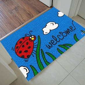 Tapete Capacho Azul Joaninha Welcome 60X40 Modelo: JOANINHA WELCOME Medida: 60cmx40cm Tapete emborrachado, antiderrapante, antichamas e antifungos. Lavável, excelente durabilidade, pode ser Utilizado em área interna e externa. Decorativo e principalmente funcional para limpar os calçados. Marca: Kapart