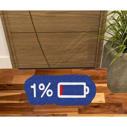 Tapete Capacho Bateria Acabando 1% No Formato Decorativo. - Cor.: Azul royal