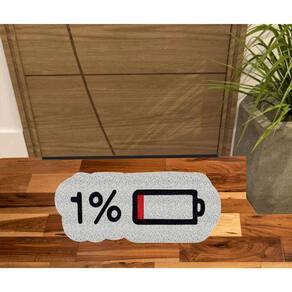 Tapete Capacho Bateria Acabando 1% No Formato Decorativo. - Cor: Roxo