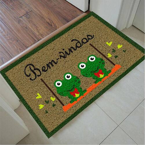 Tapete Capacho Bem-Vindo Sapos 60X40 Modelo: BEM-VINDO SAPOS Medida: 60cmx40cm Tapete emborrachado, antiderrapante, antichamas e antifungos. Lavável, excelente durabilidade, pode ser Utilizado em área interna e externa. Decorativo e principalmente funcional para limpar os calçados. Ean: 0790404731029 Marca: Não Informado