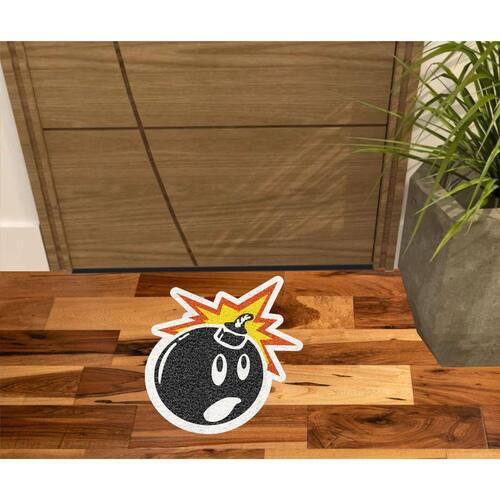 Tapete Capacho Vinil com fibras entrelaçadas e costado emborrachado com arte pinta em tinta vinílica especial.