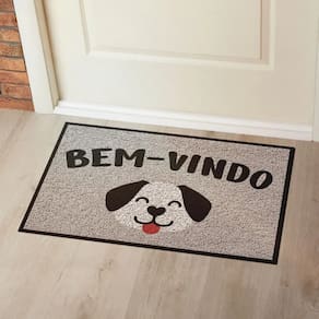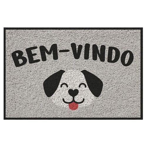 Tapete Capacho de Porta Vinílico Estampado 60x40cm Uzoo Bem Vindo Cachorro -