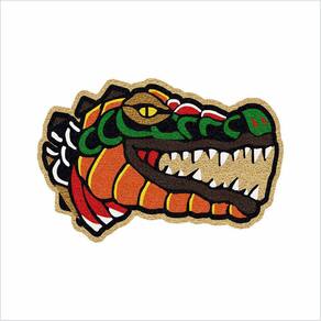 Tapete tipo Capacho Vinil com fibras entrelaçadas e costado emborrachado com arte pinta em tinta vinílica especial.