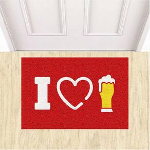 Tapete Capacho Decorativo I Love Chopp Eu Amo Cerveja 60X40. - Cor.: Vermelho