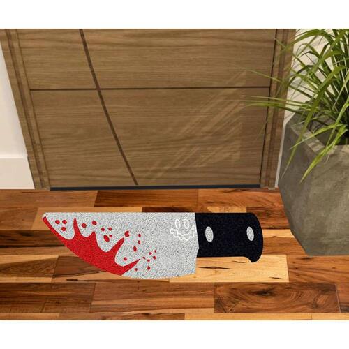 Tapete tipo Capacho Vinil com fibras entrelaçadas e costado emborrachado com arte pinta em tinta vinílica especial.