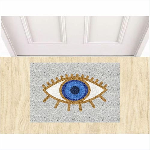 Tapete Capacho Vinil com fibras entrelaçadas e costado emborrachado com arte pinta em tinta vinílica especial.
