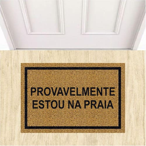 Tapete Capacho Divertido Provavelmente Estou Na Praia 60X40. - Cor: Ouro