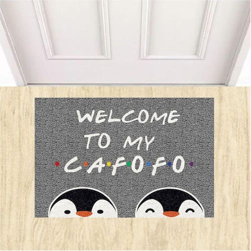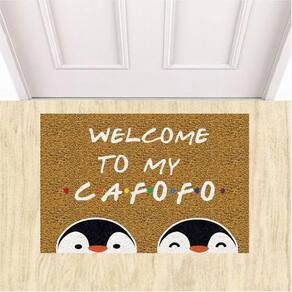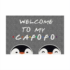 Tapete Capacho Divertido Welcome To My Cafofo Pinguins LGBT. - Cor: Cinza