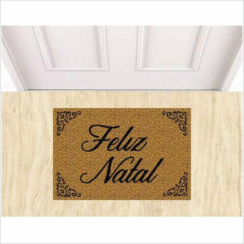 Tapete Capacho Feliz Natal Cor Ouro, Porta De Entrada