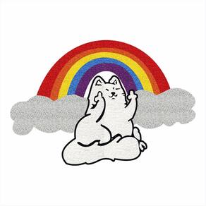 Tapete Capacho Gato no Arco Iris LGBT 80X55 cm No Formato. - Cor: Prata