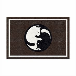 Tapete Capacho Gato Pets Yin Yan Lua e Sol 60X40 cm Marrom