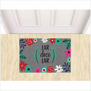 Tapete tipo Capacho Vinil com fibras entrelaçadas e costado emborrachado com arte pinta em tinta vinílica especial.