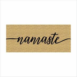Tapete tipo Capacho Vinil com fibras entrelaçadas e costado emborrachado com arte pinta em tinta vinílica especial.