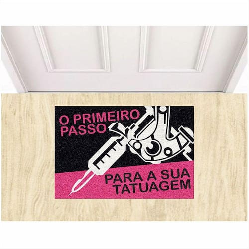 Tapete Capacho O Primeiro Passo Para Sua Tatuagem 60X40 cm. - Cor: Rosa