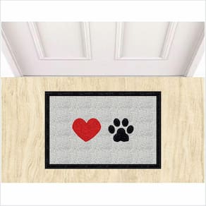 Tapete tipo Capacho Vinil com fibras entrelaçadas e costado emborrachado com arte pinta em tinta vinílica especial.