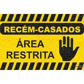 Tapete Capacho Personalizado Modelo: Recém casados área restrita Medida: 60cmx40cm Tapete emborrachado, antiderrapante, antichamas e antifungos. Lavável, excelente durabilidade, pode ser Utilizado em área interna e externa. Decorativo e principalmente funcional para limpar os calçados.
