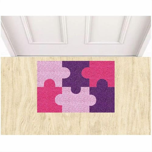 Tapete Capacho Quebra Cabeça Colorido 60X40cm Antiderrapante - Cor: Pink