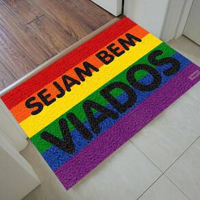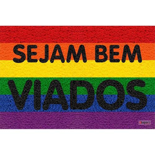 Modelo: Sejam Bem Viados Medida: 60cmx40cm Cor: Vermelho Material: Fibra de Vinil Tapete emborrachado, antiderrapante, antichamas e antifungos. Lavável, excelente durabilidade, pode ser em área interna e externa. Decorativo e principalmente funcional para limpar os calçados.