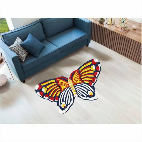 Tapete Capacho Vinil Insecta Borboleta No formato 1,00X60 cm - Cor: Azul marinho