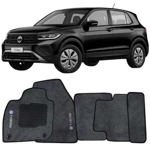 Tapete Carpete T-Cross 2019 à 2025 Grafite Logo Bordado Jogo 5 Peças Personalizado Automotivo