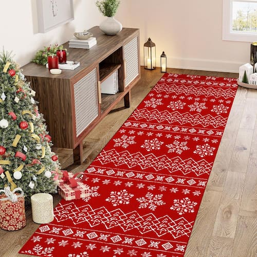 Ótimo para um visual de Natal sem perder qualquer textura ou declaração. O tapete e o corredor macios da WondRg apresentam padrões exclusivos de renas de Natal, casa e árvore, trazendo uma sensação de feriado a qualquer espaço. Características: 1. Superfície feita sem queda e perfil baixo, não obstruirá as portas. 2. Feito de fibra de poliéster, adequado para a família na sala de estar, corredor, quarto ou cozinha. 3. Desenhos de alce e árvore de Natal com tons festivos, adicionando uma sensação chique à decoração da casa. 4. Possui um suporte de borracha antiderrapante, seguro o suficiente para atividades internas. Ampla aplicação: 2' x 6' (61.0x183.0 cm ou 61x183 cm) : tapete de tapete de Natal adequado para decoração corredor, cozinha, banheiro ou entrada 2' x 8' (61.0x244.0 cm ou 61x244 cm) : tapete longo para corredor longo, cozinha, quarto ou hall de entrada 5'x7' (59.4 cm 84 x 82 0,86 pol. ou 152 x 213 cm): tapete de área 5 x 7 grande o suficiente para decorar sala de estar interna, escritório em casa, dormitório, quarto de hóspedes ou quarto de crianças 8'x10' (96,06x120,08 polegadas ou 244 x 305 cm): 8 x 10 ótimo para decorar grande sala de estar, escritório em casa, sala de jogos, berçário, sala de aula ou jantar. Instruções de cuidados da mesa: 1 . Limpeza diária Sacuda poeira ou detritos Use vassoura e limpe a sujeira Pequeno aspirador portátil 2. Limpeza profunda Lavável à mão ou à máquina em água fria Use detergente suave Secar ao ar livre Nota: 1. O tapete leve ou fino precisa escolher a frequência adequada ao aspirar. Recomenda-se um pequeno aspirador portátil. 2. Nosso tapete vem dobrado em um pacote pequeno, que pode haver alguns vincos no início. Desenrole ou coloque livros pesados sobre eles. 3. Algumas cores do tapete podem variar ligeiramente devido à diferença de cores do monitor ou iluminação. 4. É permitido um pequeno desvio de tamanho devido a diferentes métodos de medição. - Design de Natal: este tapete WondRg tem um estilo de Natal moderno e padrão de floco de neve exclusivo, tons de festival combinam perfeitamente com sua casa, ótima maneira de mostrar seu estilo pessoal e realçar a beleza de qualquer cômodo da sua casa - Material macio: este tapete é feito de microfibra resistente a derramamentos e manchas de alta qualidade, o que permite que seus filhos e animais de estimação desfrutem do conforto e suavidade sob seus pés, criando uma área relaxante para crianças e sua família - Lavável na máquina: este tapete pode ser lavado na máquina de lavar, não desbota ou não cai, também pode ser reaproveitado. A manutenção diária é simples e conveniente, poeira e sujeira na superfície podem ser removidas facilmente - Base antiderrapante: a parte inferior do tapete tem um suporte de borracha TPE durável. Tem boa aderência ao chão e não é fácil de escorregar, ideal para superfícies de piso laminado e de madeira. Reduz o risco de tropeçar e proteger seus pisos de arranhões - Multifuncional: o tapete WondRg é um design fino e de pelo baixo que é adequado para áreas de alto tráfego. Usar este tapete como tapete de cabeceira, tapete de entrada, tapete de sala de estar, tapete de entrada, tapete de cozinha, tapete de lavanderia e tapete de escritório também é uma boa escolha