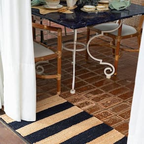 Tapete Copa E Cia Sense Nature Daru Marinho Com Natural - 50 X 120 Cm Tapete Copa e Cia Sense Nature Daru Marinho com Natural - 50 x 120 cm - Características Gerais do Produto: - Composição: Juta - Detalhes: Fabricado na Índia.; Peça Vendida de Forma Individual.; Design Exclusivo Copa&Cia.; As cores podem sofrer pequenas alterações de cor, variando de monitor para monitor.; Os objetos que ambientam as fotos não acompanham o produto.; As fotos produzidas são apenas como sugestão de uso com as demais peças da coleção.; Por ser uma peça com fibras naturais, pode ocorrer pequenas variações de tonalidade. - Cuidados: Não Deixar de Molho.; Não recomendado limpar a seco.; Secar Bem e Armazenar em Local Seco e Arejado.; Não torcer ou dobrar totalmente o produto.; Não utilizar solventes, abrasivos ou alvejantes.; Lavar manualmente com sabão neutro e escova macia.; Não pode ser lavado com lavadora de alta pressão.; Não secar ao sol.; Manter o produto na horizontal; Proibido o uso de secadora. - Dimensões (cm): Linha possui variação em 3 tamanhos; 50 x 80 cm; 50 x 120 cm; 60 x 180 cm Acompanha o produto: - 1 Peça de Tapete Garantia: - 7 dias/30 dias contra defeito de fabricação