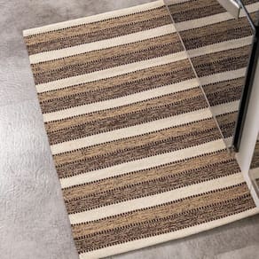Tapete Copa E Cia Sense Nature Rajiv - 50 X 80 Cm Tapete Copa e Cia Sense Nature Rajiv - 50 x 80 cm - Características Gerais do Produto: - Composição: Algodão - Detalhes: Fabricado na Índia.; Peça Vendida de Forma Individual.; Design Exclusivo Copa&Cia.; As cores podem sofrer pequenas alterações de cor, variando de monitor para monitor.; Os objetos que ambientam as fotos não acompanham o produto.; As fotos produzidas são apenas como sugestão de uso com as demais peças da coleção.; Por ser uma peça com fibras naturais, pode ocorrer pequenas variações de tonalidade. - Cuidados: Não Deixar de Molho.; Armazenar em local seco e arejado.; Não torcer ou dobrar totalmente o produto.; Não utilizar solventes, abrasivos ou alvejantes.; Lavar manualmente com sabão neutro e escova macia.; Não pode ser lavado com lavadora de alta pressão.; Não secar ao sol. - Dimensões (cm): Linha possui variação em 3 tamanhos; 50 x 80 cm; 50 x 120 cm; 60 x 180 cm Acompanha o produto: - 1 Peça de Tapete Garantia: - 7 dias/30 dias contra defeito de fabricação