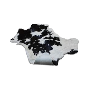 Tapete Couro De Bezerro Nonato Terneiro Preto e Branco 90 x 90 cm