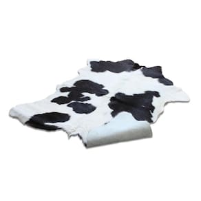 Tapete Couro De Bezerro Nonato Terneiro Preto e Branco 90 x 90 cm