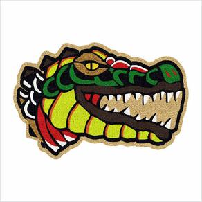 Tapete tipo Capacho Vinil com fibras entrelaçadas e costado emborrachado com arte pinta em tinta vinílica especial.