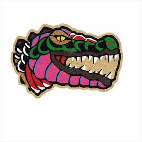 Tapete tipo Capacho Vinil com fibras entrelaçadas e costado emborrachado com arte pinta em tinta vinílica especial.